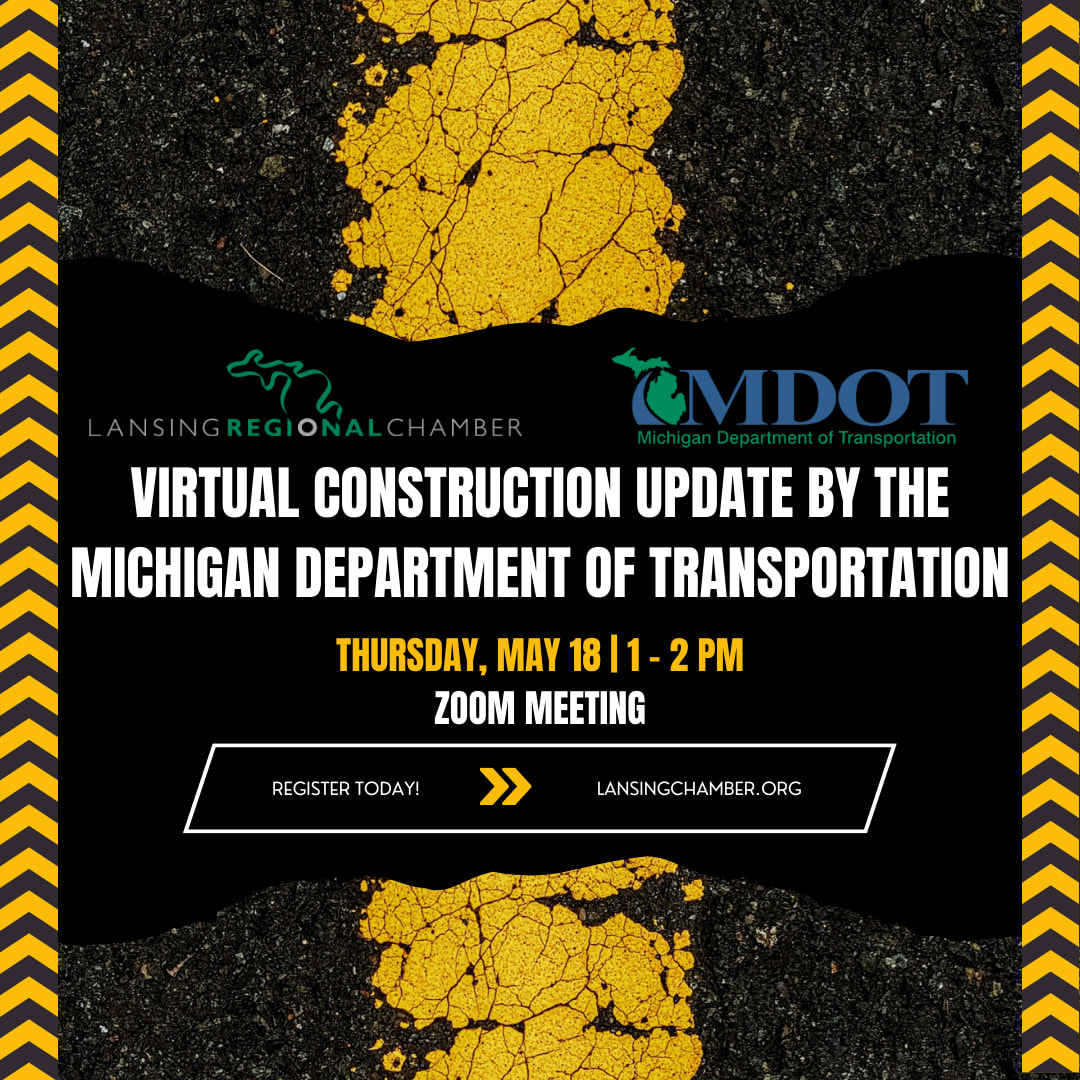 As we move into another year of economic recovery and growth, it's important to stay informed about the state of our transportation infrastructure and how it affects our businesses and communities. That's why we're excited to invite you to a virtual construction update by the Michigan Department of Transportation (MDOT) on Thursday, May 18 from 1-2 p.m. via Zoom.