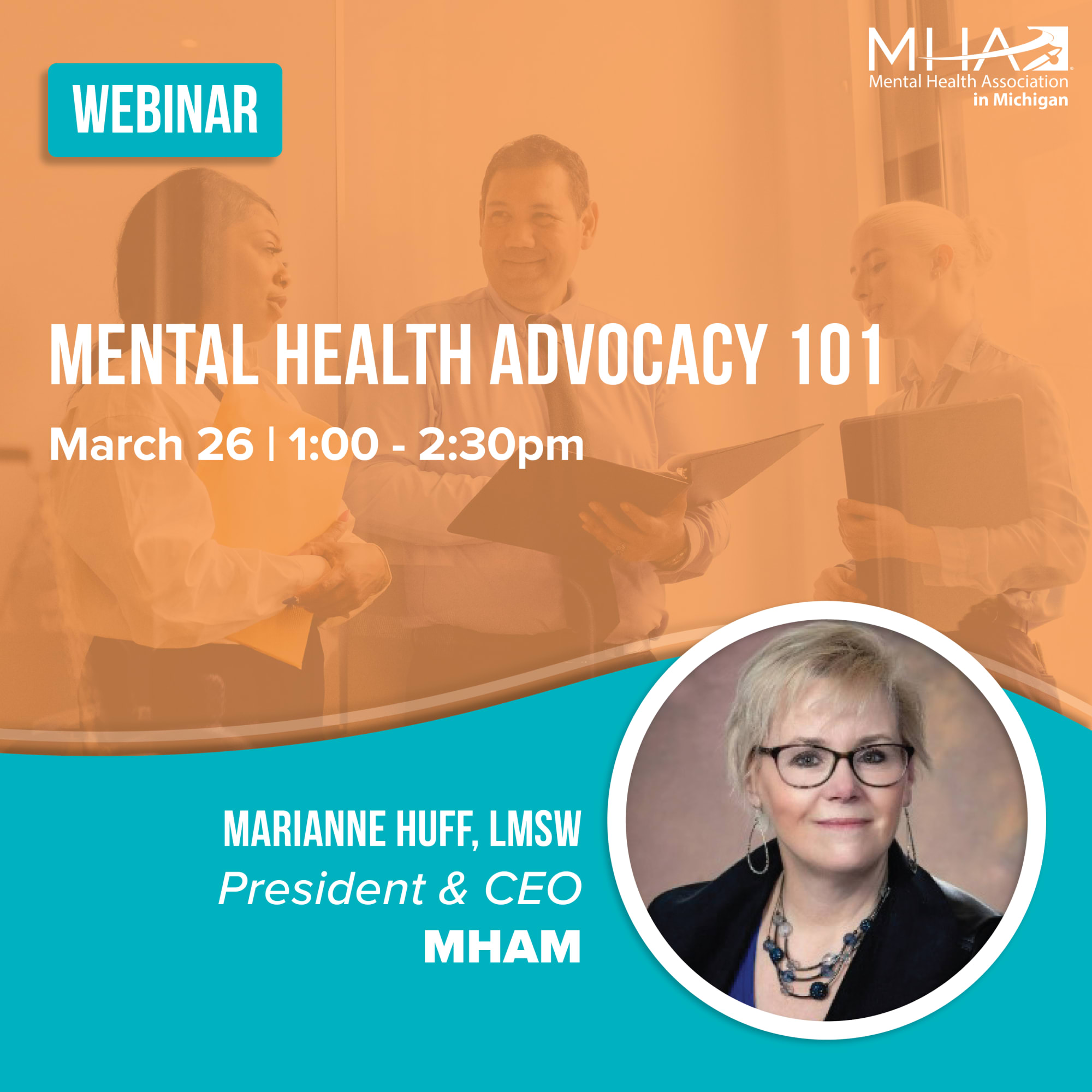 The Mental Health Association in Michigan (MHAM) invite you to join us for this virtual. Together, we will walk through advocacy steps necessary to access the community mental health system. Bring your questions and be ready to receive answers and have discussion.